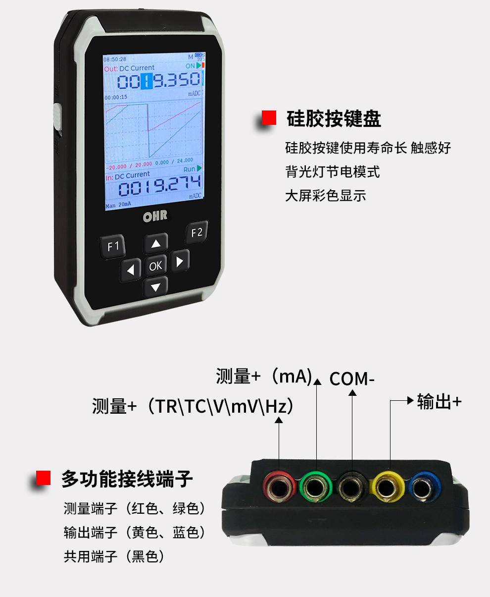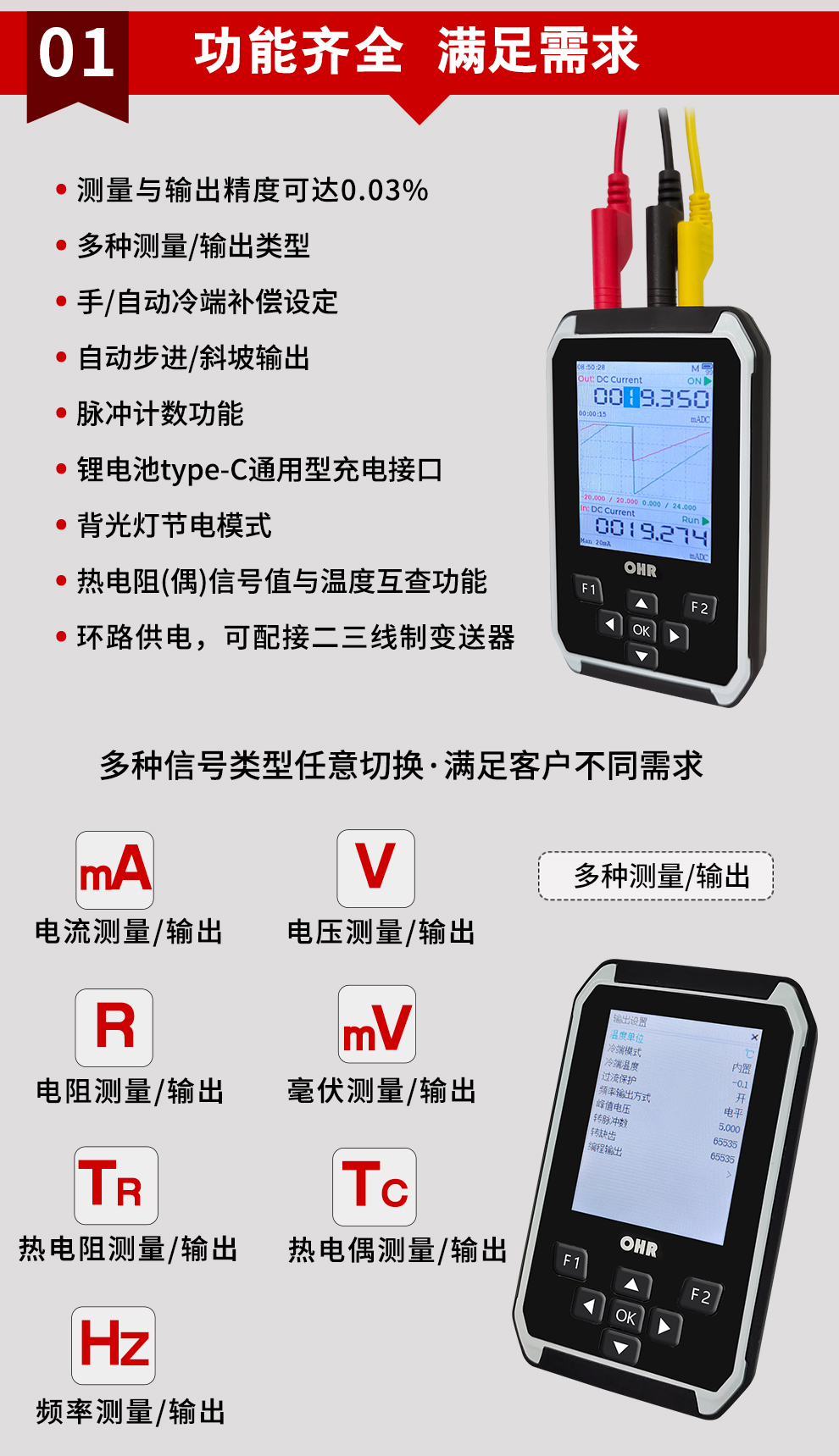 OHR-C00多功能校驗儀/信號發生器是帶測量與輸出的過程信號校驗儀。產品具有高精度、信號任意切換、續航能力強、大彩屏占比、小巧可裝口袋等特點,產品功能設置簡單易用,為使用者帶來了更便捷的體驗。