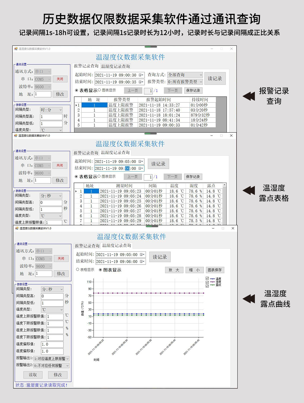 便攜式溫濕度記錄儀對(duì)環(huán)境的溫濕度進(jìn)行實(shí)時(shí)監(jiān)測(cè)、報(bào)警與記錄。