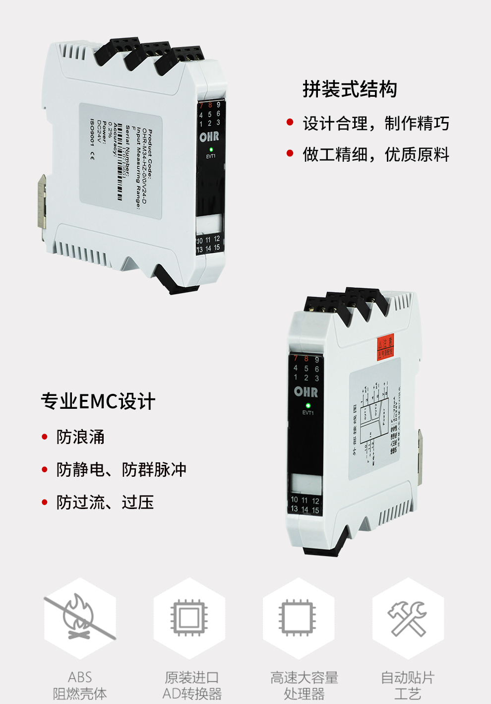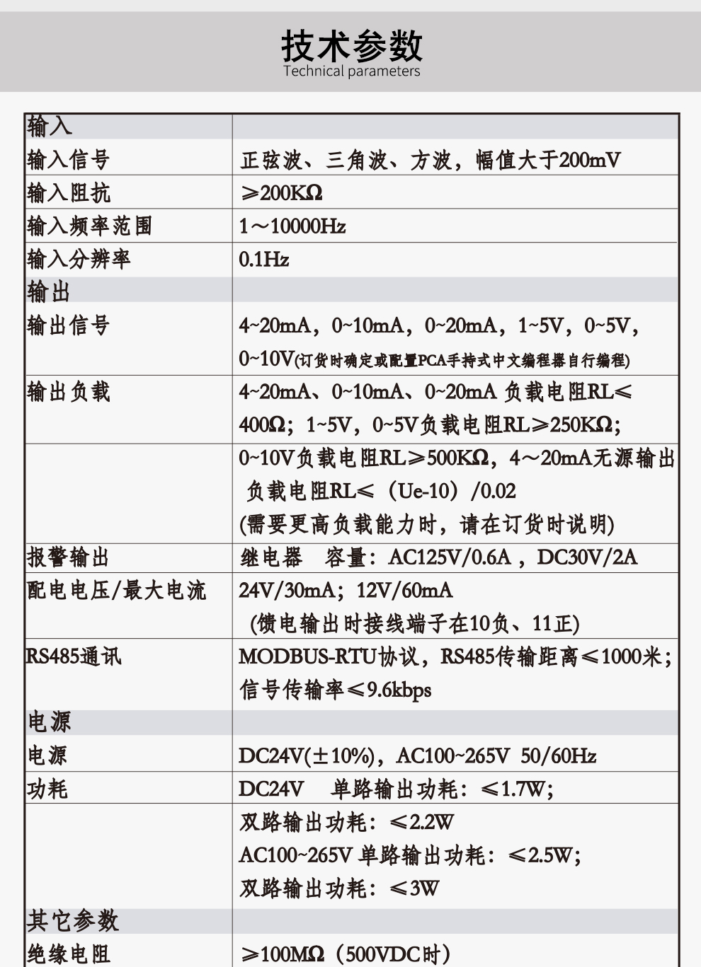 OHR-M34系列智能頻率轉換器將頻率信號經隔離整形放大后,變送隔離輸出所需的信號,也可向現場的一次儀表提供電源回路。