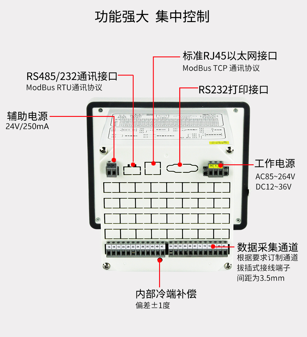 彩色無(wú)紙記錄儀/溫度記錄儀用新型大規(guī)模集成電路,對(duì)輸入、輸出、電源、信號(hào)采取可靠保護(hù)和強(qiáng)抗干擾設(shè)計(jì)。48路萬(wàn)能輸入。可帶RS232/485通訊接口,以太網(wǎng)接口,微型打印機(jī)接口和USB接口,SD卡插座;可提供傳感器配電;具有強(qiáng)大的顯示功能,實(shí)時(shí)曲線顯示,歷史曲線追憶,棒圖顯示等。